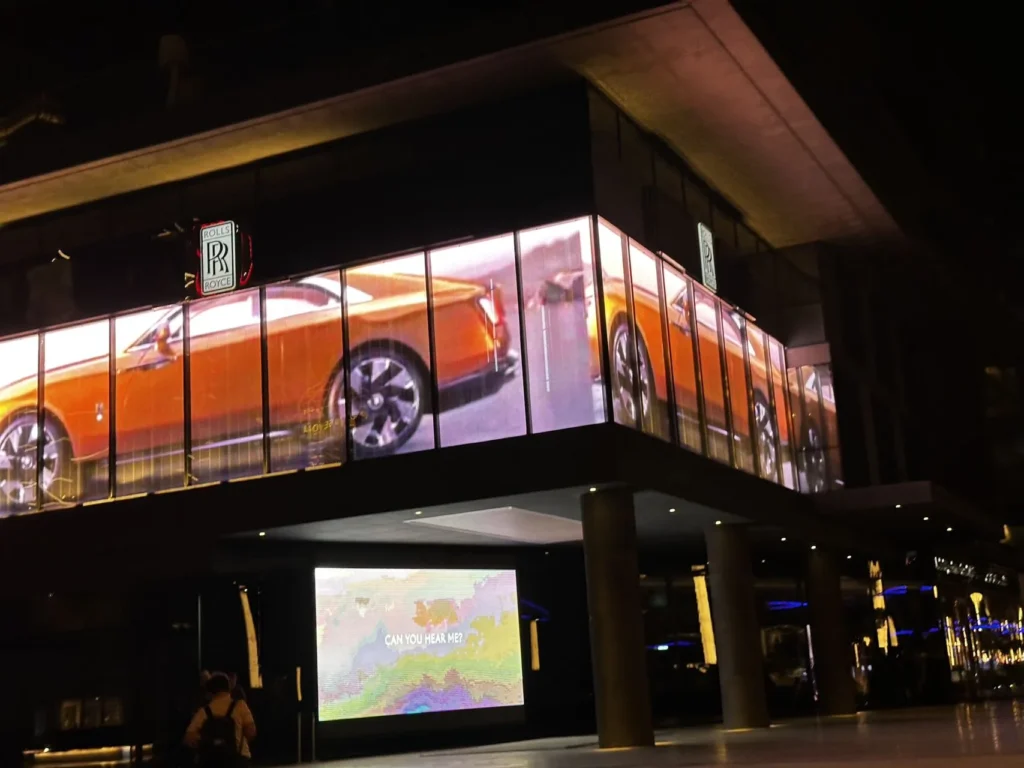 Using our Outdoor Mesh/Transparent LED screens, we transformed this luxury car brand’s headquarters into a striking visual landmark, bringing the building to life with exceptional clarity, brightness, and color accuracy. The sleek, lightweight mesh design enhances the architecture without blocking natural light, while delivering high-impact visuals that showcase the brand’s identity with elegance and sophistication.