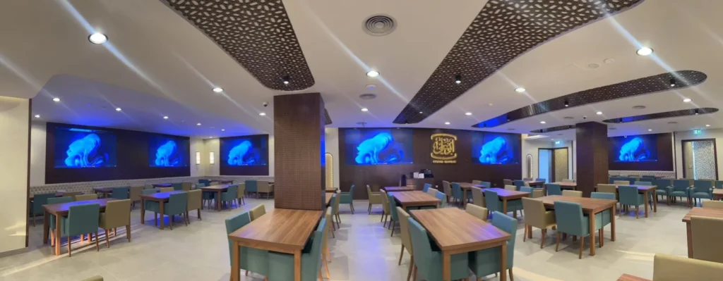 At Abo Ali Restaurant, Butterfly LED installed a premium P1.8 indoor LED display to redefine the guest experience through high-definition visuals and seamless content delivery. The fine 1.8 mm pixel pitch ensures exceptional clarity for menus, promotions, and dynamic media, while the installation was executed with meticulous attention to alignment, calibration, and integration into the restaurant’s sophisticated interior design.