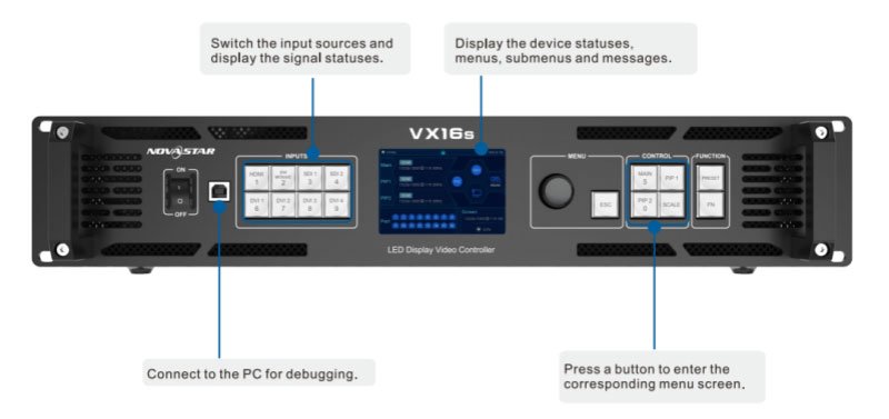 The NovaStar VX16s is an all-in-one controller with built-in video processing, control, and LED configuration. It supports multiple signal inputs, 4K×2K@60Hz processing, and up to 10.4 million pixels, making it ideal for stages, events, exhibitions, and fine-pitch displays.